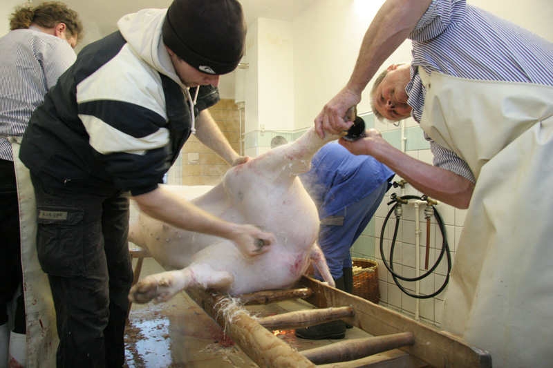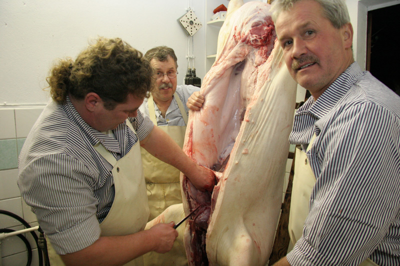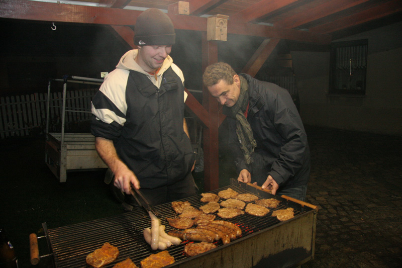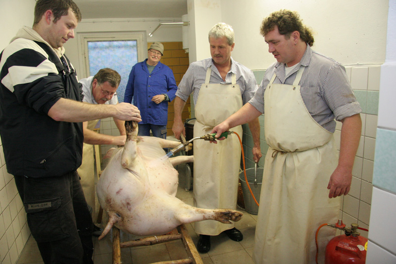 Ein 200-Kilogramm-Schwein + sechs lustige Schlachtergesellen = 50 Kilogramm Hackepeter + 93 Blutwürste + 93 Knacker + 67 Leberwurstringe. Das war die Erfolgsformel des Schlachtfests 2010, zu dem die Kameraden der Freiwilligen Feuerwehr Klinga wieder ihre Partner, Helfer und Förderer eingeladen hatten. Doch eine ganze Menge fleißiger Hände mehr hatte an den Schlachtetagen und schon das ganze Jahr über dazu beigetragen, dass das Klingaer Feuerwehrjahr wieder ein erfolgreiches wurde. So konnte die bewährte Gemeinschaft aus Feuerwehr und Förderverein wieder ein ausgelassenes Fest bei Foto-Rückschau, Musik, Tanz – und deftigen Schlachtetellern feiern.