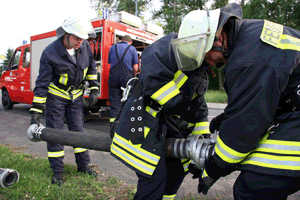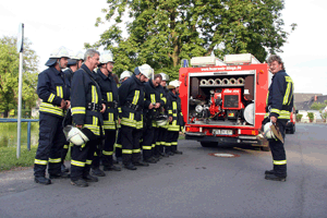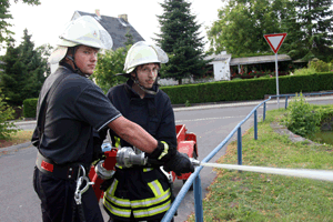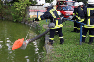 Ihre jüngsten Feuerwehrdienst widmeten die Klingaer Kameraden dem Training der Löschwasserentnahme am Dorfteich.