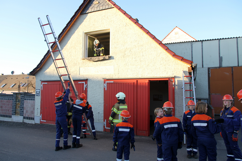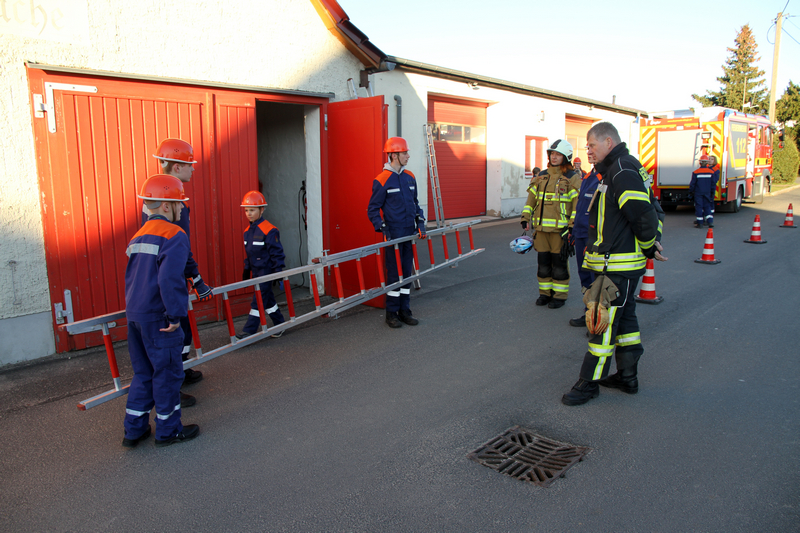 Auf dem Ausbildungsplan der Klingaer Jugendfeuerwehr stand heute der Umgang mit Steckleitern.