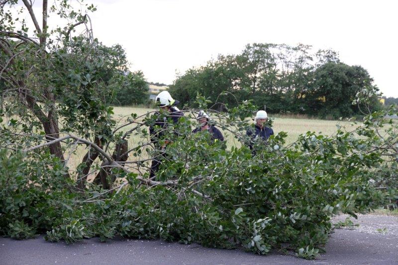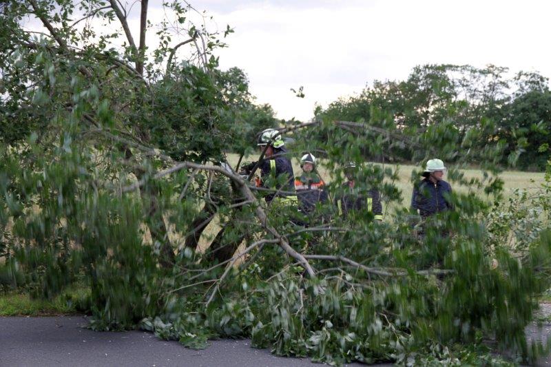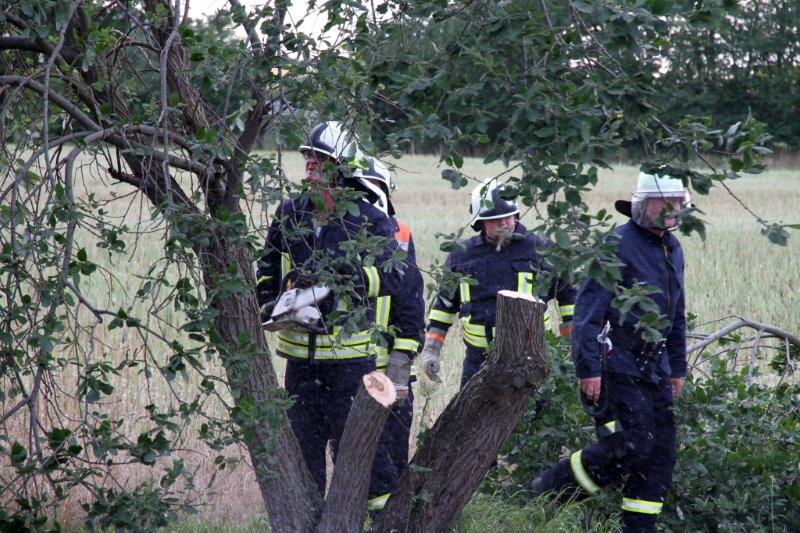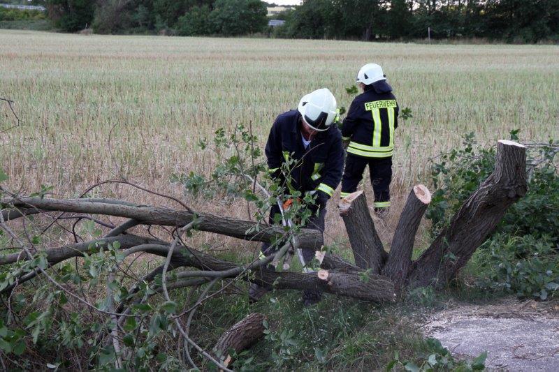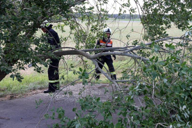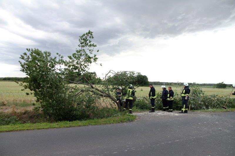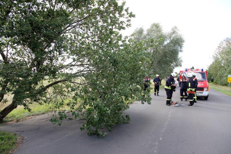 Eine Weide hielt dem Wind nicht mehr stand und behinderte auf der Straße zwischen Großsteinberg am See und Großsteinberg den Verkehr.