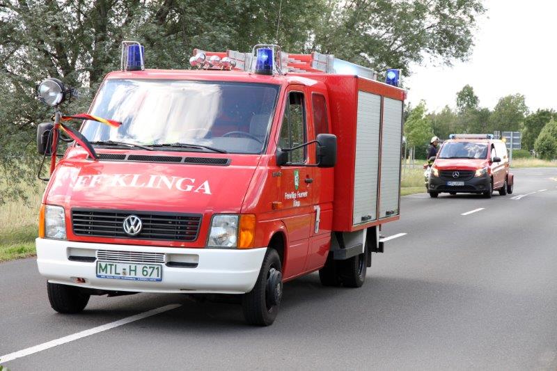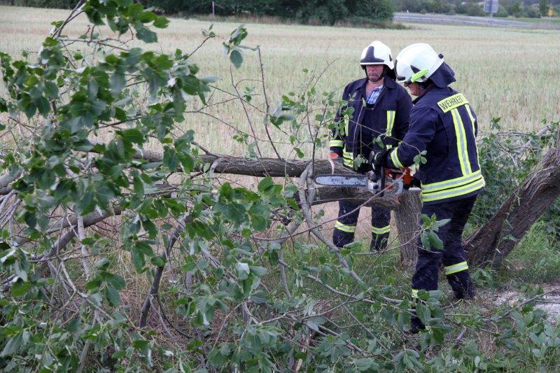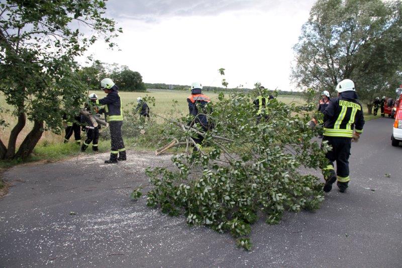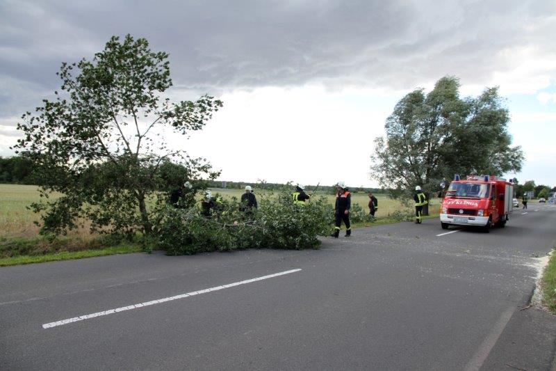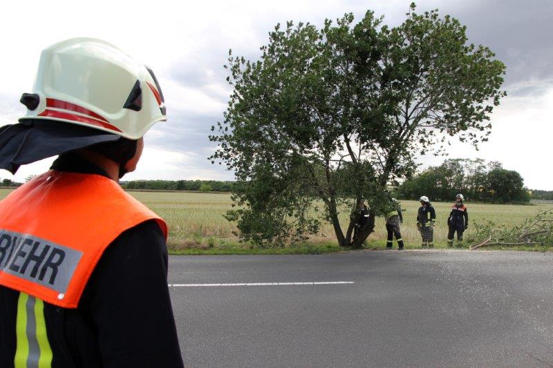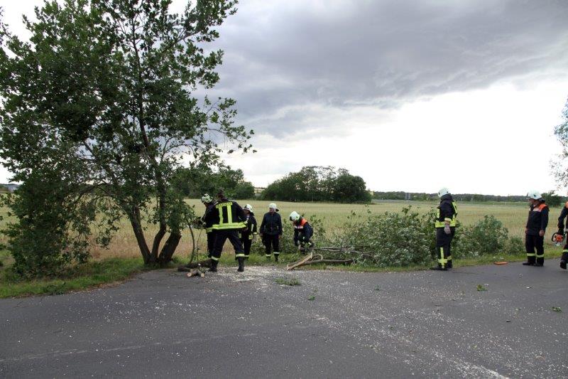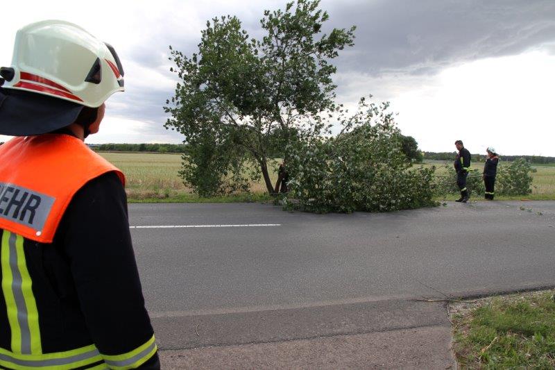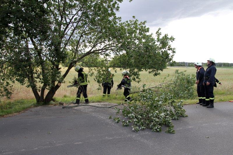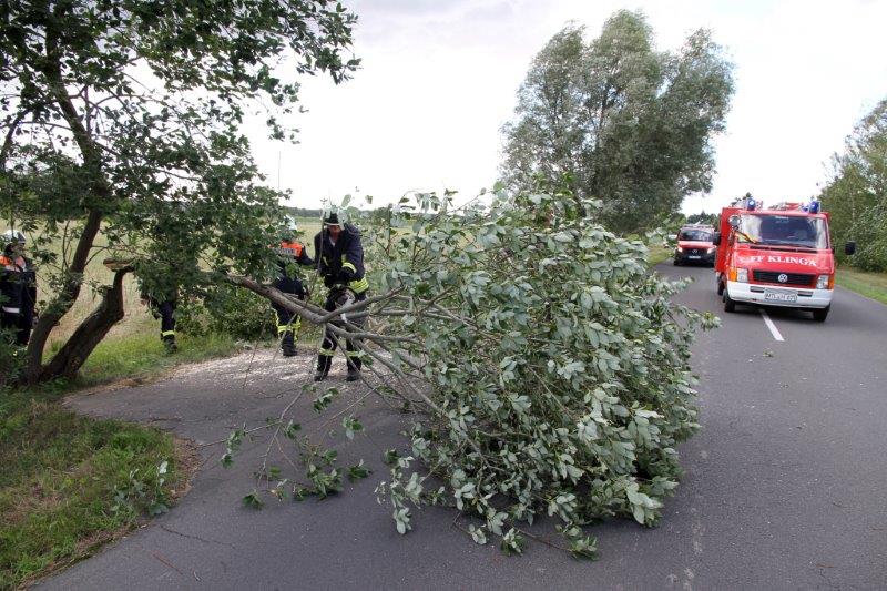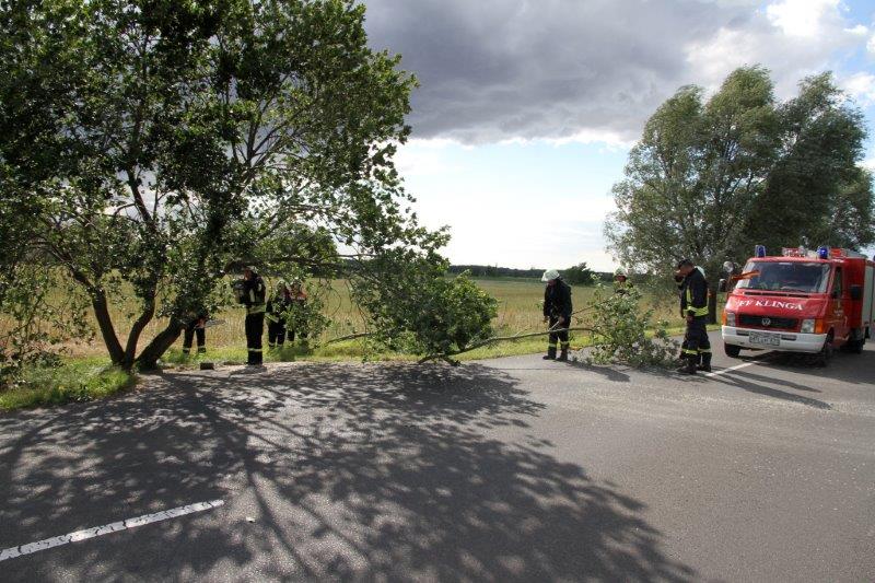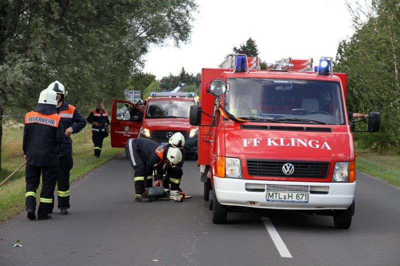 Um 17.04 Uhr alarmierte die Leitstelle erneut die Feuerwehren aus Klinga und Großsteinberg. Auf der Ortsverbindungsstraße zwischen Großsteinberg am See und Großsteinberg hatte sich eine Weide im Wind soweit auf die Straße geneigt, dass sie auf einer Fahrbahn den Verkehr gefährdete. Die Feuerwehrleute sicherten die Einsatzstelle, fällten den Baum und reinigten die Straße.