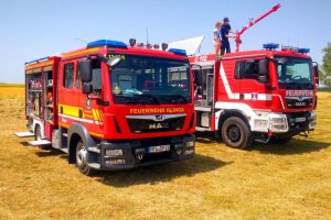Matthias und Michael Tag gratulierten stellvertretend für die FF Klinga vor Ort. Die Oelzschauer Kameraden blickten in ihre eigene Geschichte zurück und präsentierten Löschangriffe im Wandel der Zeiten. Anschließend hielt unser MLF auch noch zu einer Stippvisite beim Tag der offenen Tür der FF Großpösna. wo er große Anerkennung erntete.