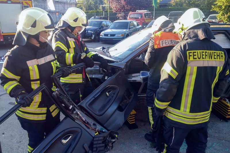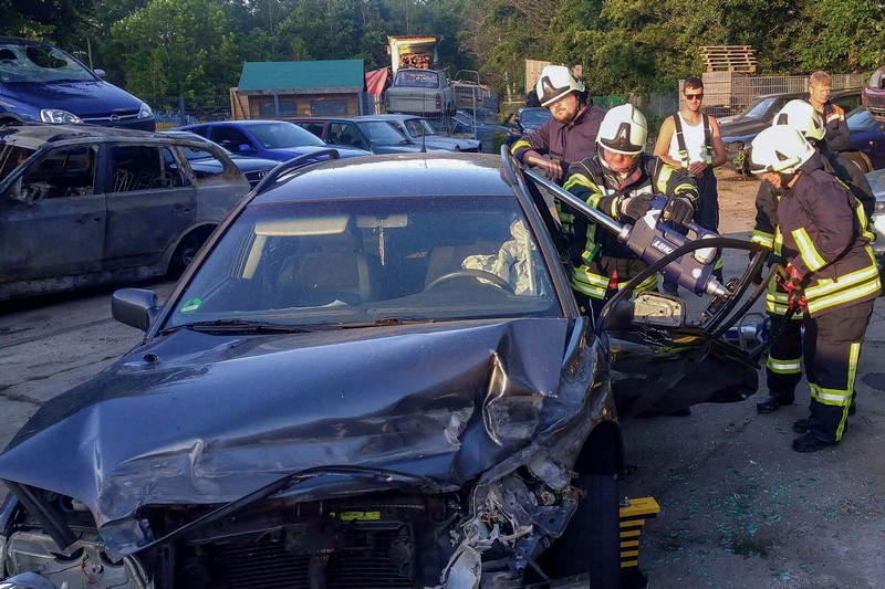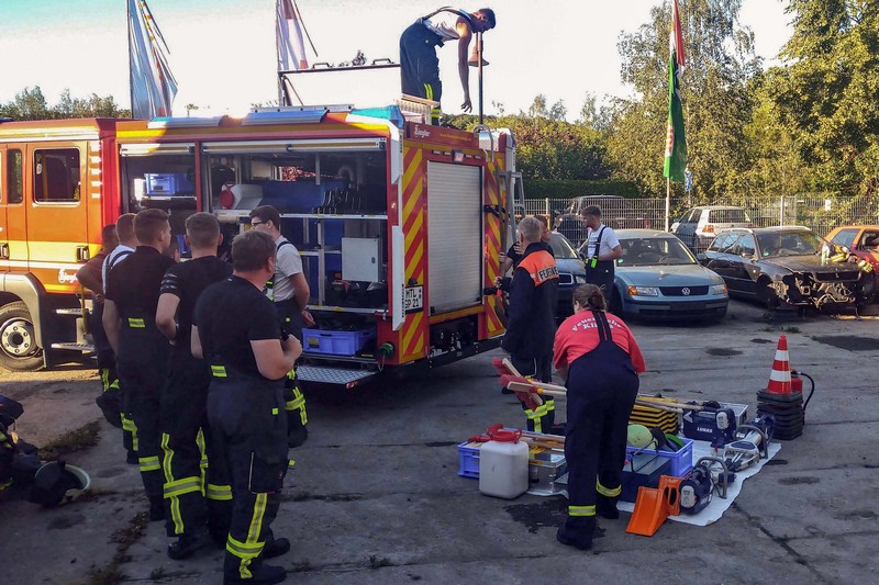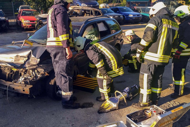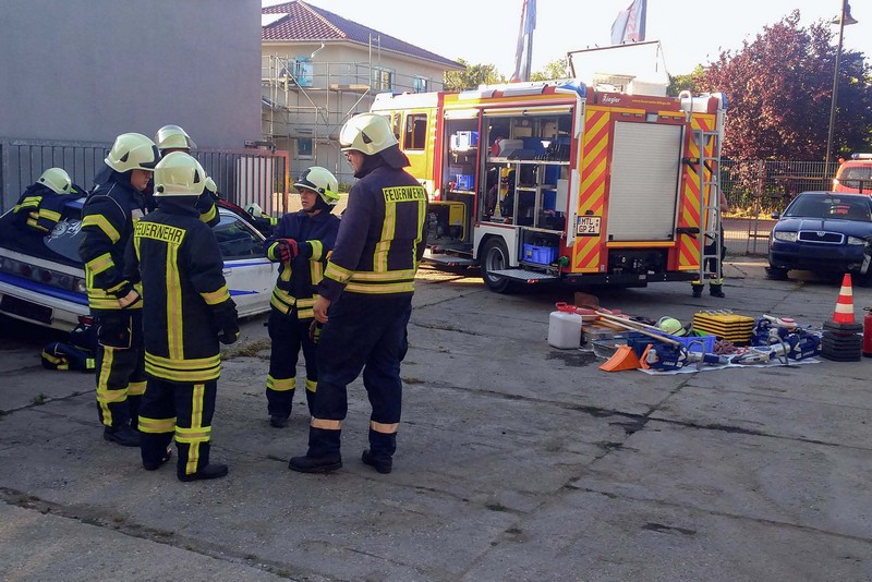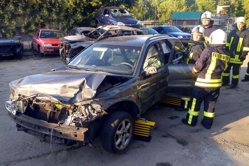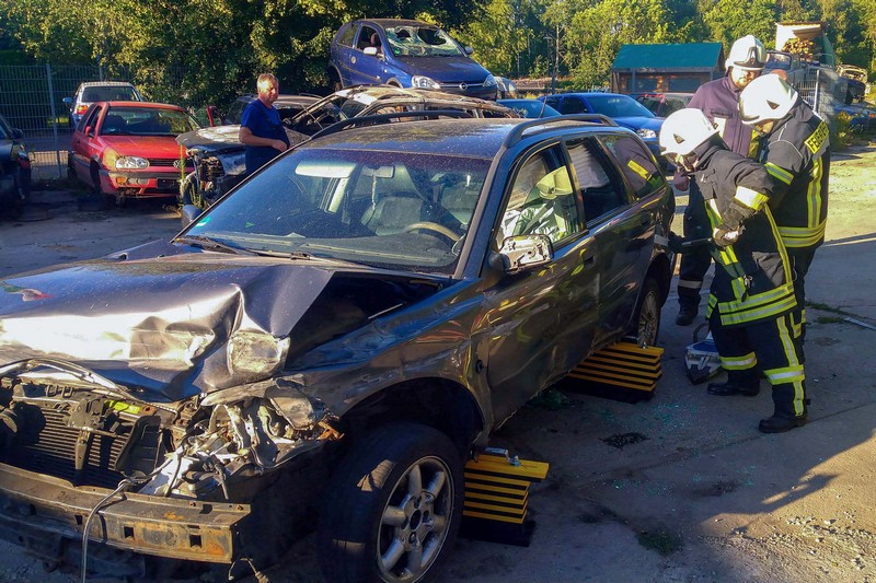 Dort hatte die Firma Kadyk & Kadyk Abschlepp- und Bergedienst auf ihrem Betriebsgelände einen Schrott-Pkw zur Verfügung gestellt. Erstmals konnten die Klingaer Einsatzkräfte so auch mit dem neuen Mittleren Löschfahrzeug die Rettung von Personen nach Verkehrsunfällen trainieren. Zum Einsatz kamen dabei neben den Glaswerkzeugen und dem Halligan-Tool auch die Akku-betriebenen Schneid- und Spreizwerkzeuge. Wir danken der Firma Kadyk & Kadyk für ihre bewährte Unterstützung!